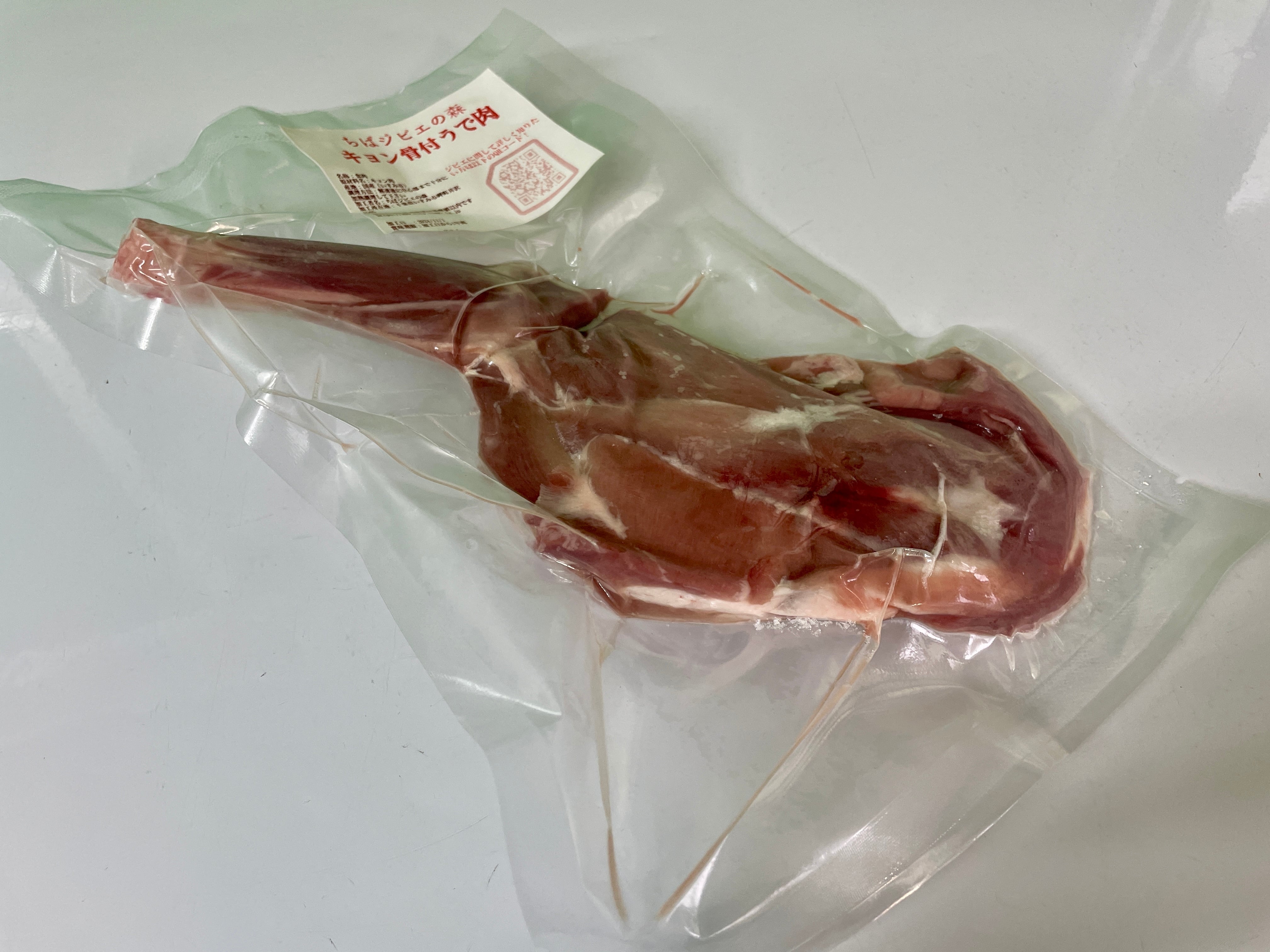 キョンの骨付腕肉310グラムとタヌキ骨付き肉760グラムのセットです。